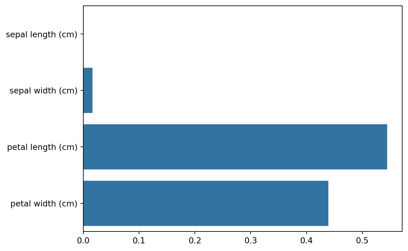sns.barplot(x=dt_clf.feature_importances_, y=iris_data.feature_names)sepal length (cm): 0.000