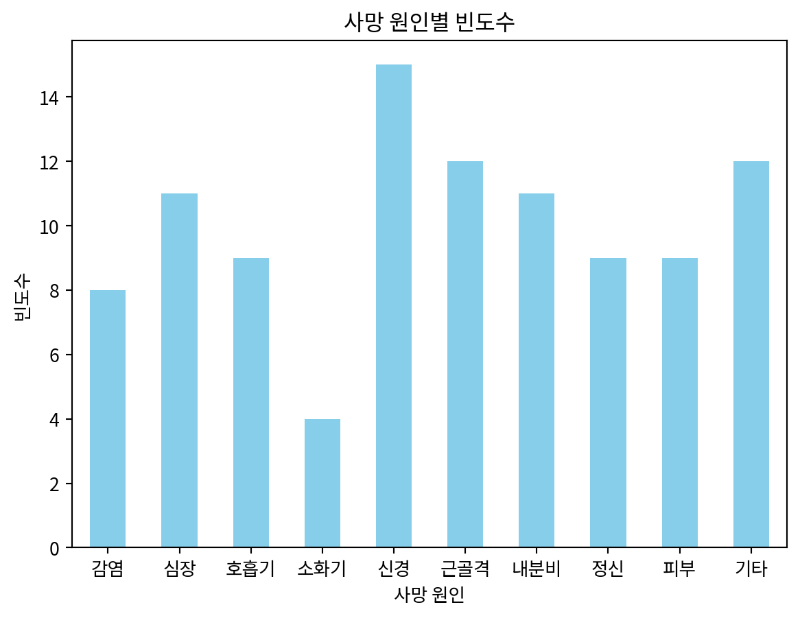 table = pd.crosstab(index=df.values.flatten(), colnames=['질병'], columns='도수')