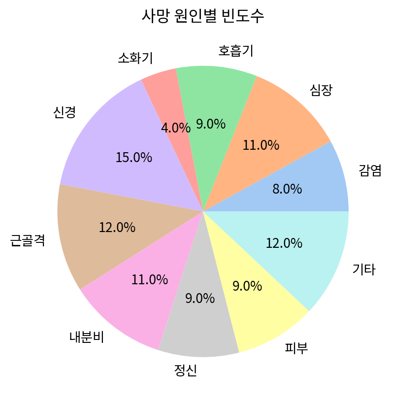 table.index = ["감염", "심장", "호흡기", "소화기", "신경", "근골격", "내분비", "정신", "피부", "기타"]