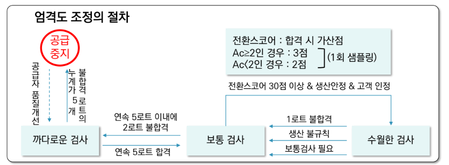- 생산자의 품질 수준에 따라 차별적인 샘플링 검사 시행
