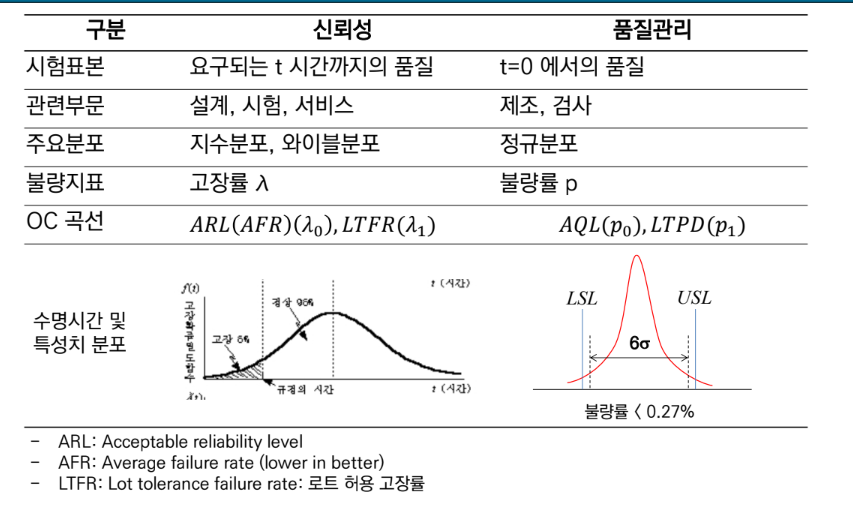 • 신뢰성과 품질경영: 과거 품질 관리는 공정중심의 관리와 사후 관리에 치중되었으나, 신뢰도 공학은 사전예방 시스템으로 고장 발생 확률을 미리 예방하기 위해, 사전 시스템 공학적 품질경영을 추구