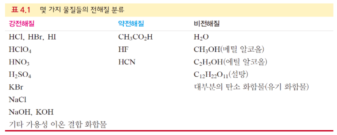 - 강 전해질: 물에 녹였을 때 거의 대부분(70~100%) 이온으로 해리되는 화합물