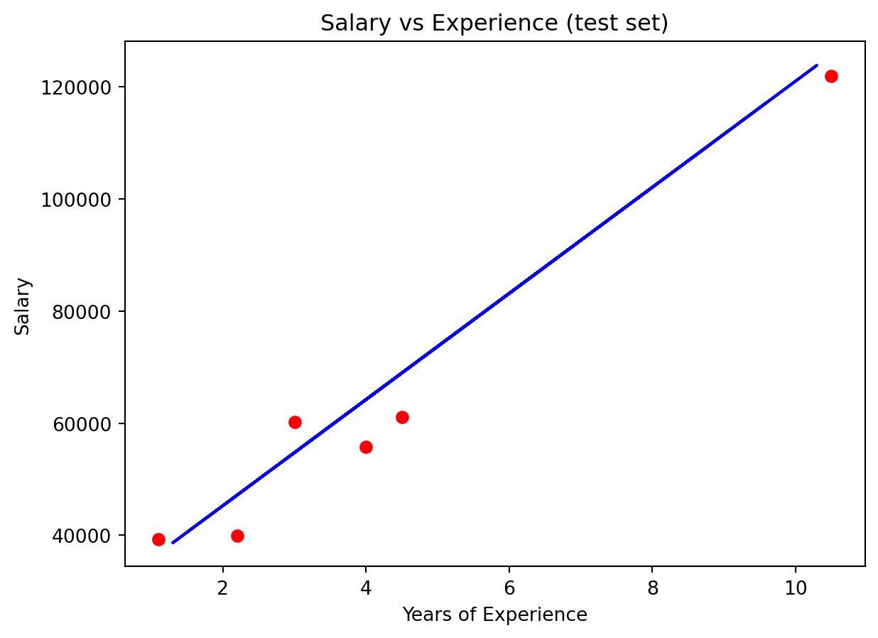 plt.title('Salary vs Experience (test set)')