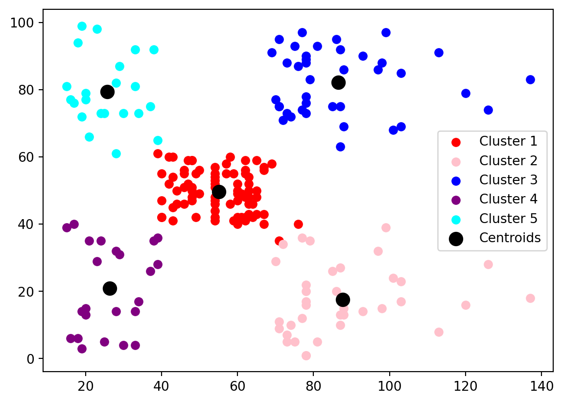 cluster = KMeans(n_clusters=5, init='k-means++')