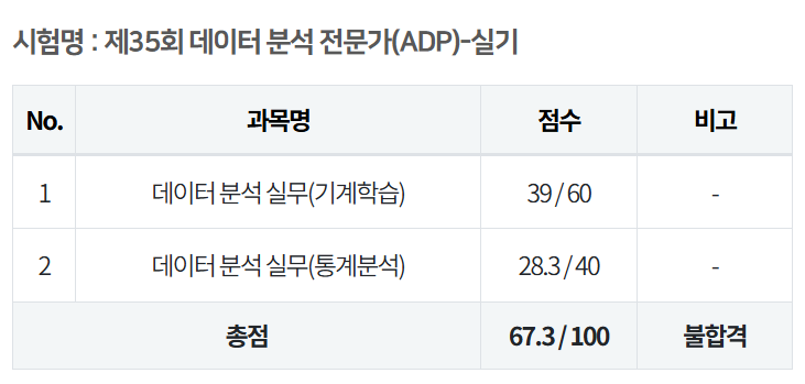 뭐 어쨌든 결과는...불합격! 예상은 하고 있었으니 뭐 크게 실망스럽진 않지만 한 문제 차이로 떨어질거라곤 생각도 못했다.