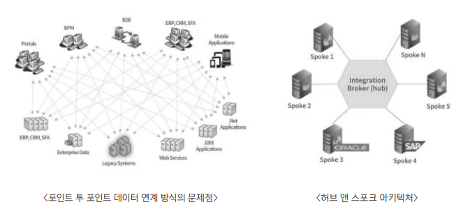 Adapter: 시스템 간 데이터 변환Broker: 데이터 전송Bus: 데이터 전송 경로 설정Transformer: 데이터 형식 변환