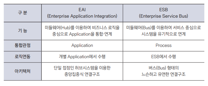 batch 처리중심, EAI는실시간 혹은 근접 실시간 처리중심