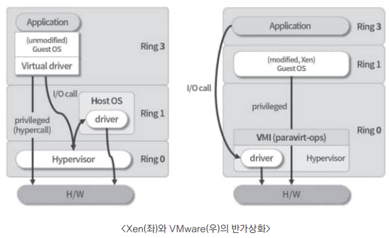 - bare-metal hypervisor: 하드웨어와 host 운영체제 사이에 hypervisor가 존재