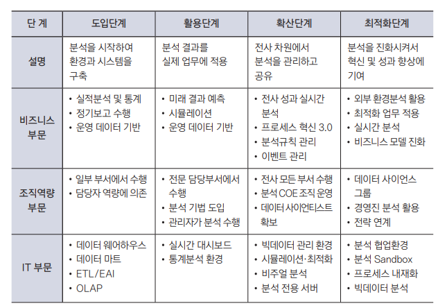 분석 준비도와 성숙도를 통해 현재 분석 수준을 파악한다. 이후 아래의 그림에 맞춰 목표 방향을 설정한다.