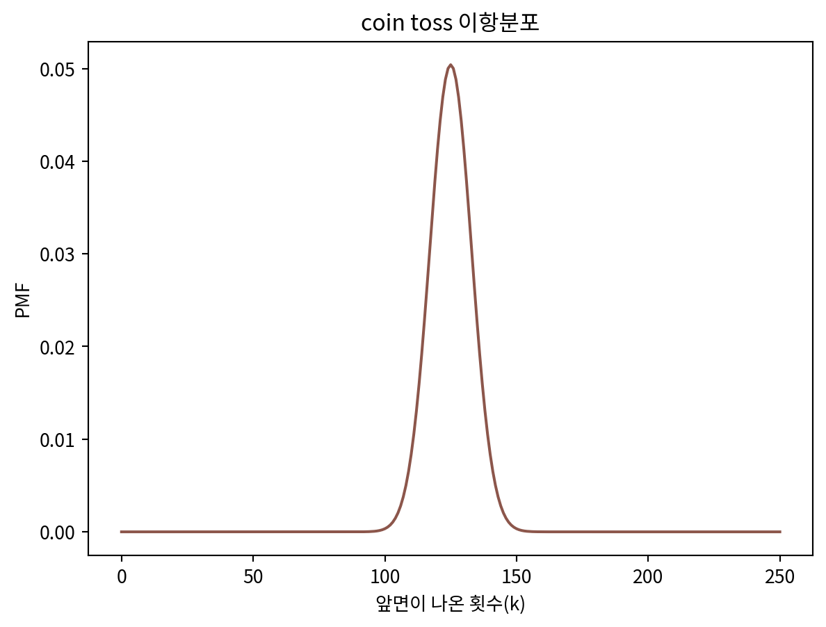 plt.title('coin toss 이항분포')