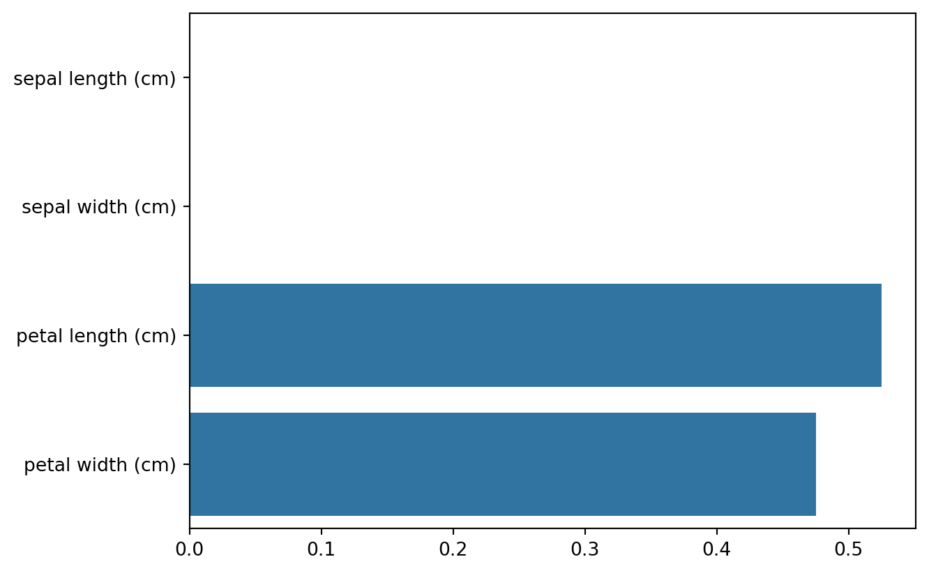sns.barplot(x=dt_clf.feature_importances_, y=iris_data.feature_names)sepal length (cm): 0.000