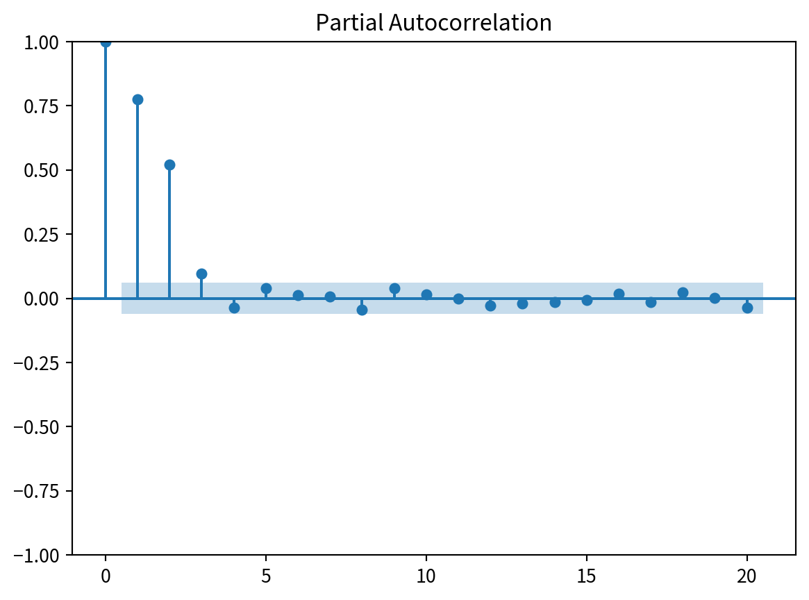 AR2_process = ArmaProcess(ar2, ma2).generate_sample(nsample=1000)from statsmodels.graphics.tsaplots import plot_pacf
