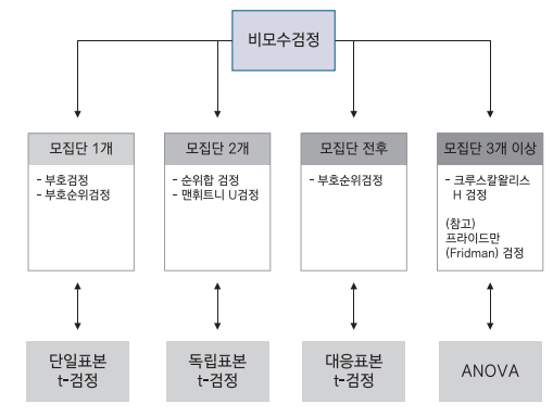 - 모집단에 대한 가정이 없이, 서열관계나 차이를 검정하는 방법