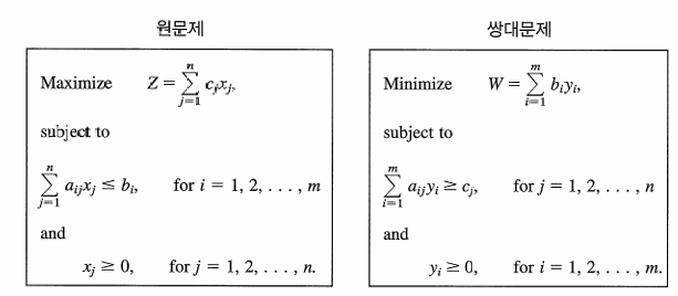- 모든 선형계획 문제는 쌍대문제를 가진다: