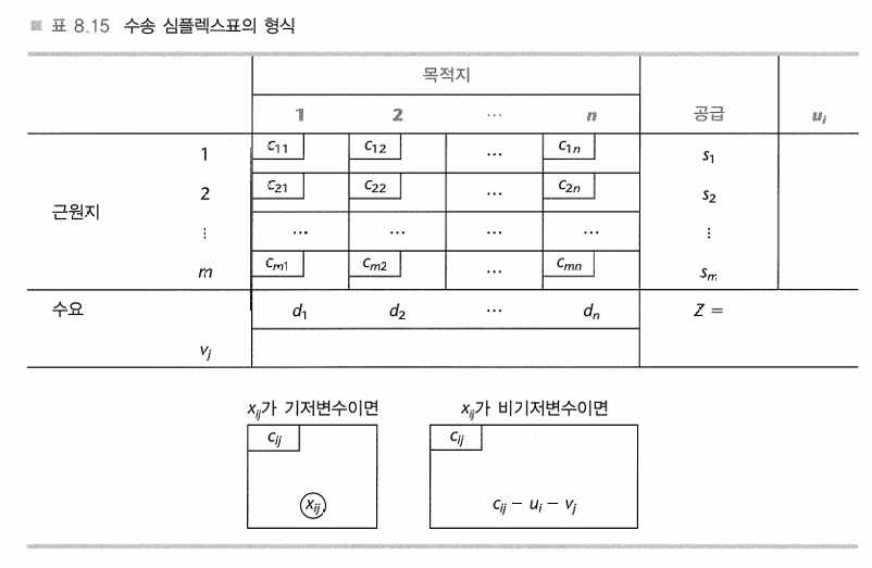 - 수송문제에서 기저가능해는 항상 m+n−1개의 기저 변수를 가진다.