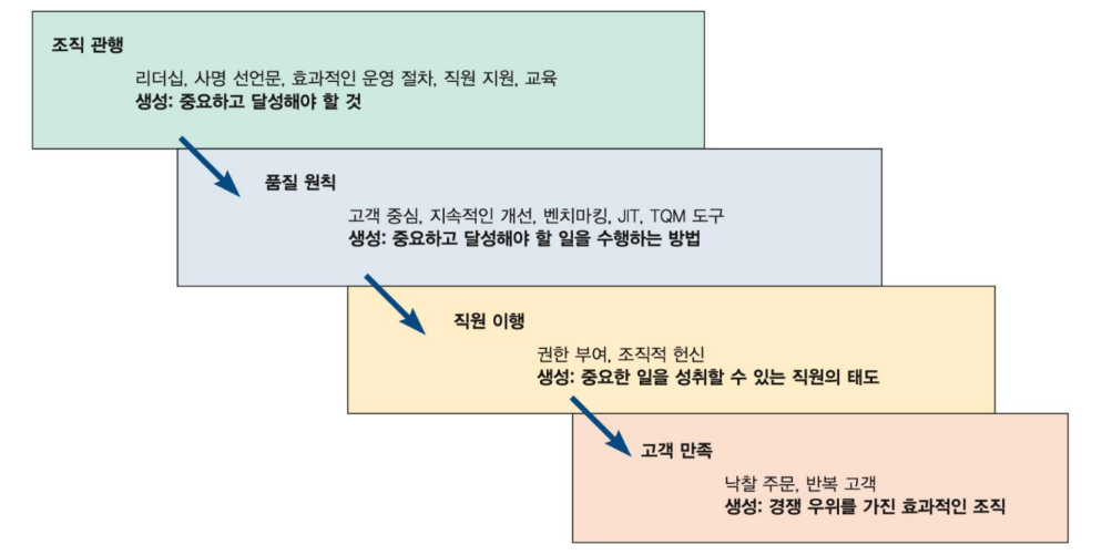 차별화와비용 절감,대응의 성공적인 전략을 구축하는데 도움이 됨 - 좋은 품질 향상을 위해 전사적인 품질 경영(TQM)의 달성이 필요.