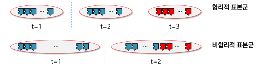 - 같은 표본군 안에는 우연변동만 존재(균일한 표본군)이 합리적임.