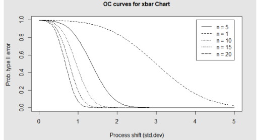 - OC 곡선: 추정치 이동에 따른 β 값의 변화. n과 변화를 알면 B값을 바로 구할 수 있다.