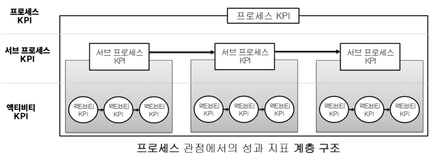 - 환경의 변화에 따라 대상 프로세스의 재선정, 성과지표의 재설계 등 수행