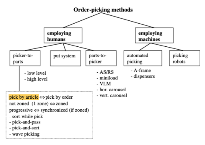 - 무작위 보관 방식: 제품의 저장장소에 대한 제약 x, 공간 활용을 최대화 할 수 있으나 picker의 이동 시간이 증가