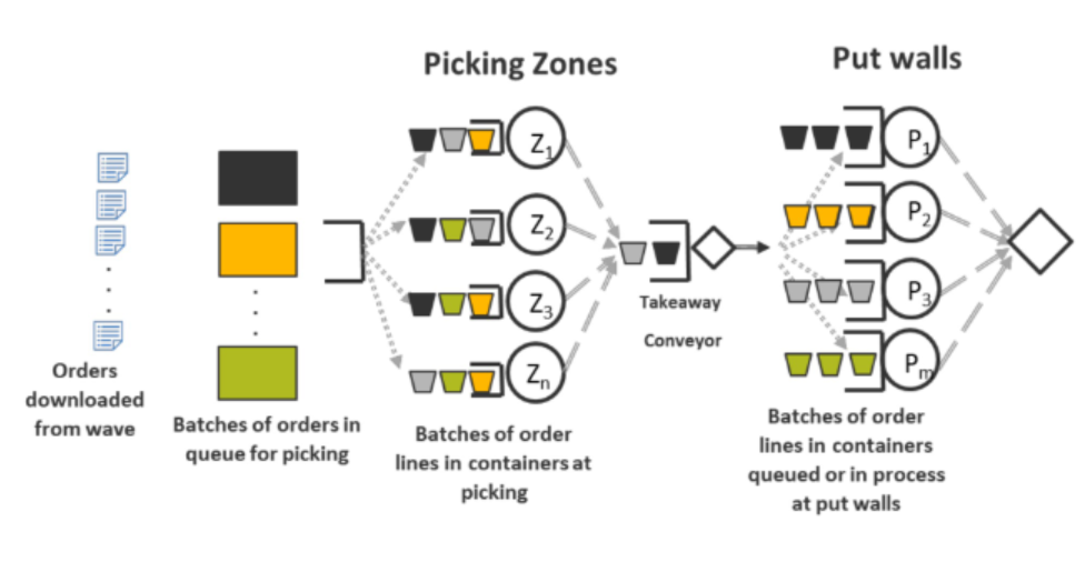 - conveyor로 물건을 받아서(혹은 AMR로) put walls에 넣는 방식도 있음(pick and sort)