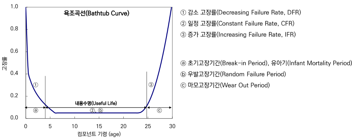 - 일반적으로 제조품의 고장률은 예방보전을 하지 않으면 욕조곡선을 그린다고 알려짐