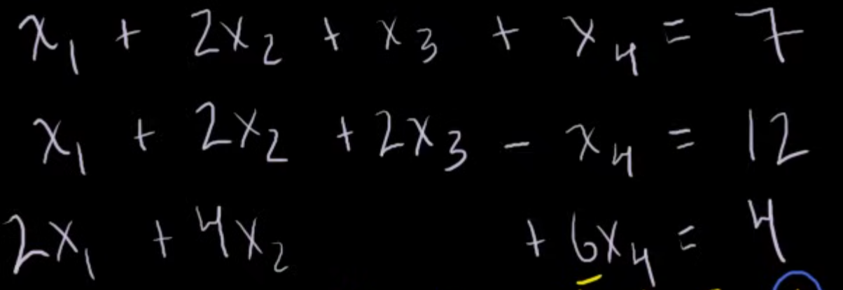 이때 선행항의 변수를 pivot variable이라고 하고, 다른 변수들은 free variable이라고 한다.