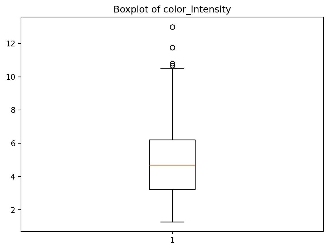 plt.title('Boxplot of color_intensity')