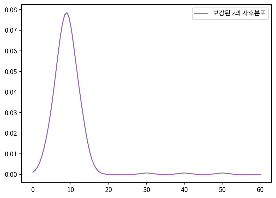 augmented_posterior_z.plot(label='보강된 z의 사후분포', color='C4')