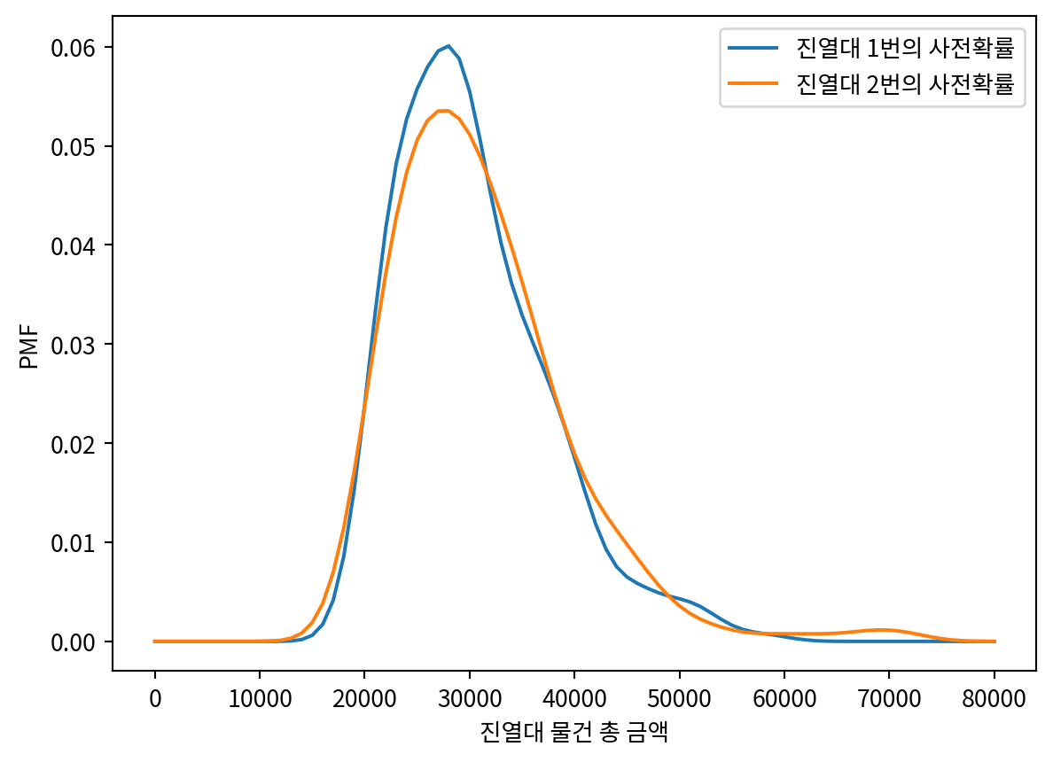 Text(0.5, 1.0, '10명이 기다리고 있는것을 관찰한 이전과 이후 분포')