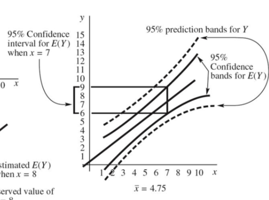• \(Var(\hat{Y_0}) = MS_E(\frac{1}{n} + \frac{(x_0 - \bar{x})^2}{S_{XX}})\)